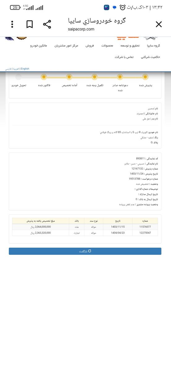 مجید : من از آذر ماه 1403 ساینا دوگانه ثبت نام کردم و اسفند تمام و کمال پول رو پرداخت کردم ، تا امروز 1 دی ماه 1404 خودرو بنده رو که قرار بود 30 روزه تحویل بدهن ، ندادند . هر چ هم پیگیری میکنم نتیجه ندارد