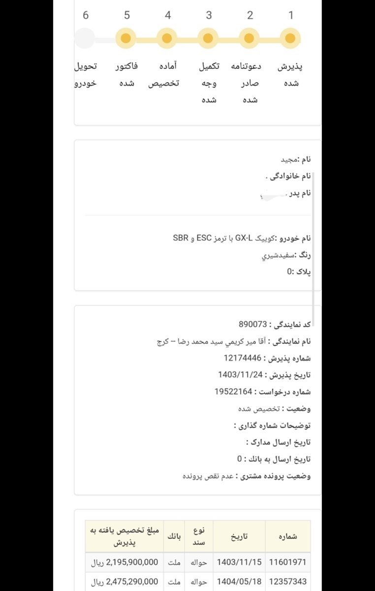 من تکمیل وجه 19 مردادم کوییک GXL هنوز فاکتور نشده