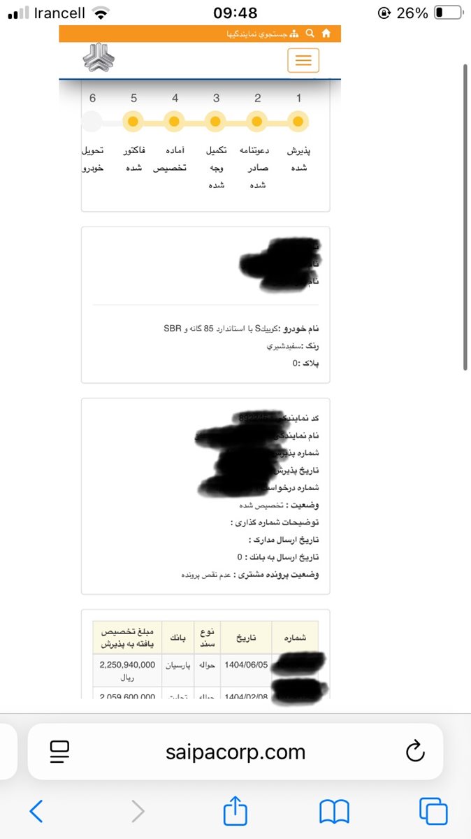 15 بهمن 403 واریزی اول 21 مرداد واریزی دوم 19 آذر فاکتور 22 آذر پلاک و هنوز چراغ تحویل روشن نشده تو هر مرحله تا مطمئن نشن جونمون به لب رسید، نمیره بعدیش
