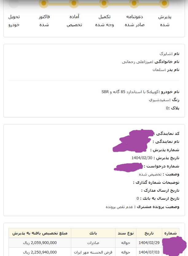 کوییکGXRرنگ سفید مشکی تکمیل وجه 25 تیر پذیرش بهمن و رنگ نوک مدادی تکمیل وجه 8 مرداد امروز فاکتور شد