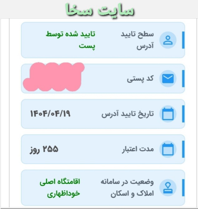 سلام دوستانی که مشکل نامعتبر بودن املاک و اسکان در سامانه سخا دارند بگم که امروز بعد از کلی پیگیری متوجه شدم اداره پست بعضی از کدپستی مناطق را تغییر داده با دریافت گواهی کدپستی جدید و ثبت در سامانه املاک و اسکان ، به سایت سخا رفته و کدپستی جدید را وارد کنید و استعلام بررسی مجدد بزنید. هم راهور تایید میشه هم سامانه املاک سبز میشه
