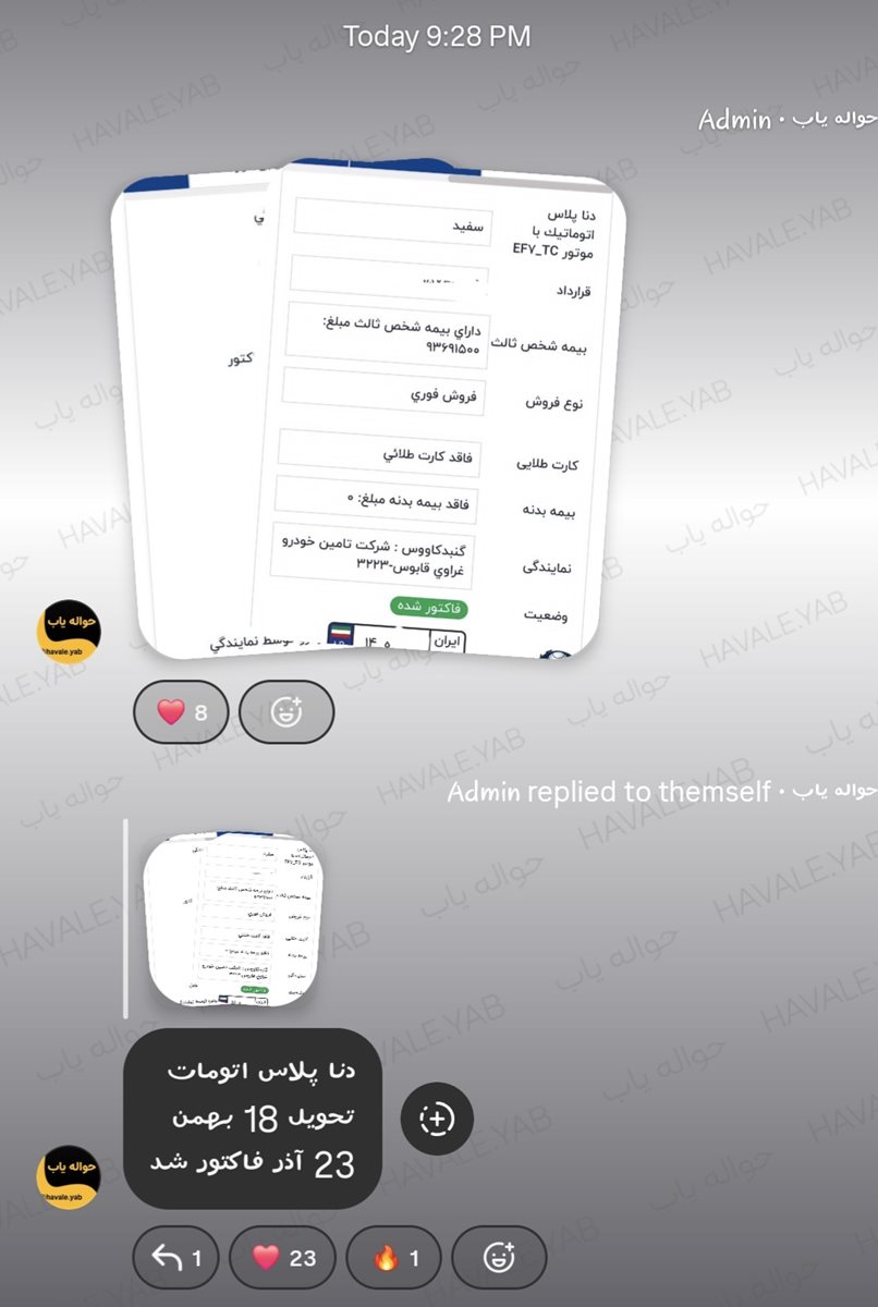 دنا فوق آپشنال سفید واریز 17 آبان امروز فاکتور و درجا پلاک ور کمال ناباوری