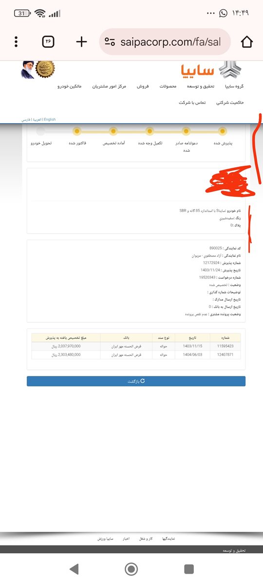 سلام قبلا سایپا اینجور نبود الان انگار خیلی تاخیر داره من سری اول بودم برج ده 402 تکمبل وجه کردم 23 اسفند402 فاکتور شد با مدل 403 چندروز بعد رفتم از تهران تحویل گرفتم حتما کمبود یه قطعه داره یا میخاد باج بگیره از دولت دوباره افزایش قیمت بده
