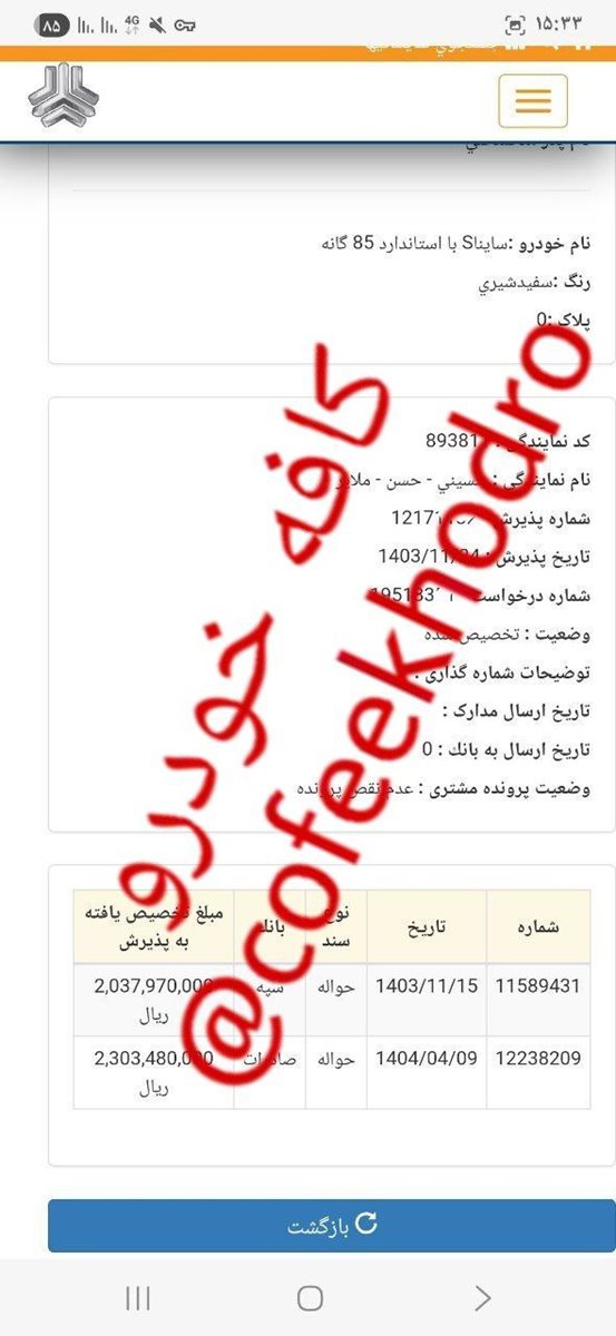 سلام دوستان.... شرکت سایپا داره تو بازار آزادشاهین جی رو میفروشه 980 شاهین جی ال950 مدل 404 اگه تو بازار آزاد خریدار ی نبود فاکتور میکنن میدن به ملت فقط میخوام بگم ما چقدر ملت بدبختی هستیم اگه باور نمیکنید برید تو برنامه دیوار تهران سرچ کنید .من تماس گرفتم و پرسیدم شاهین سانروف دار که کمبود قطعه هست تولید نمیشه گفت ما خودمون نمایندگی سایپا هستیم سند ماشین آزاد هستش یه زنه حواسش نبود همه چی رو لو داد فقت باید همگی باهم شکایت کنن وزارت صمت تجمع کنن در نمایندگی ها یک کلام وسلام