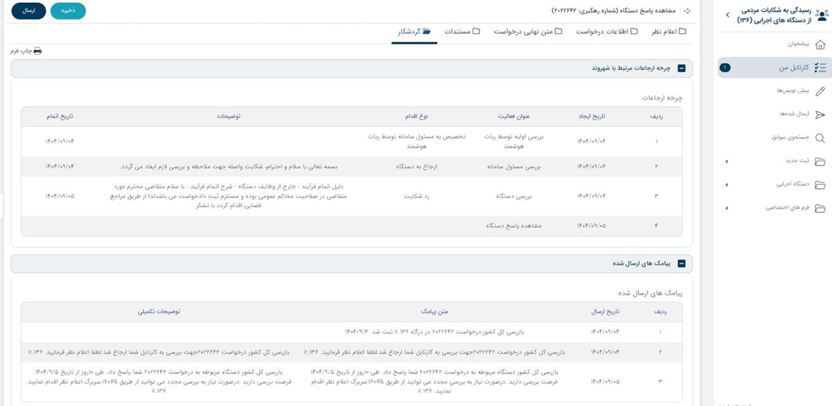 دوستان از بازرسی کشور بهم پیام اومده درخواست شما)اعتراض به رعایت نکردن مصوبه ها) به سازمان مورد شکایت رسال شد برای شما هم اومده؟؟؟؟
